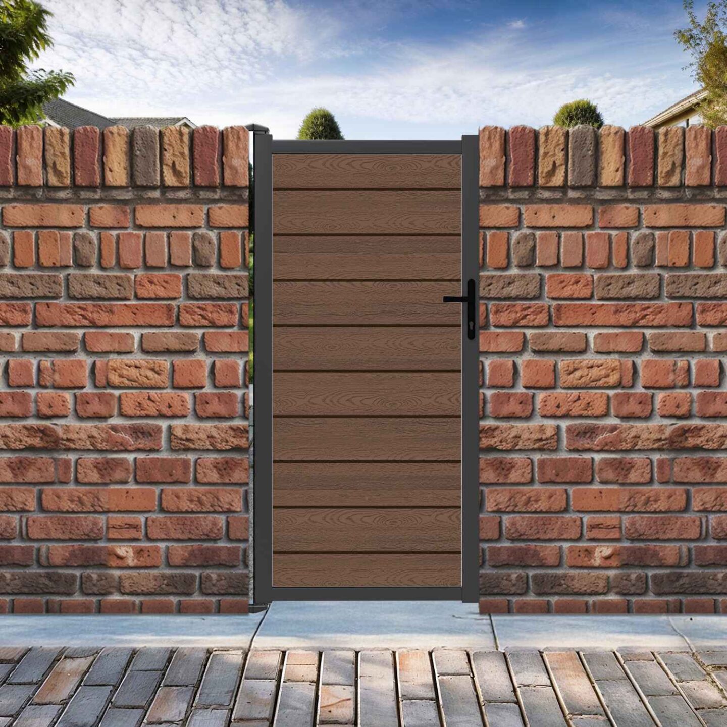 You’ll receive 1 composite gate, 2 hinges, a set of handles, a euro cylinder lock, a latch, and 3 keys.
